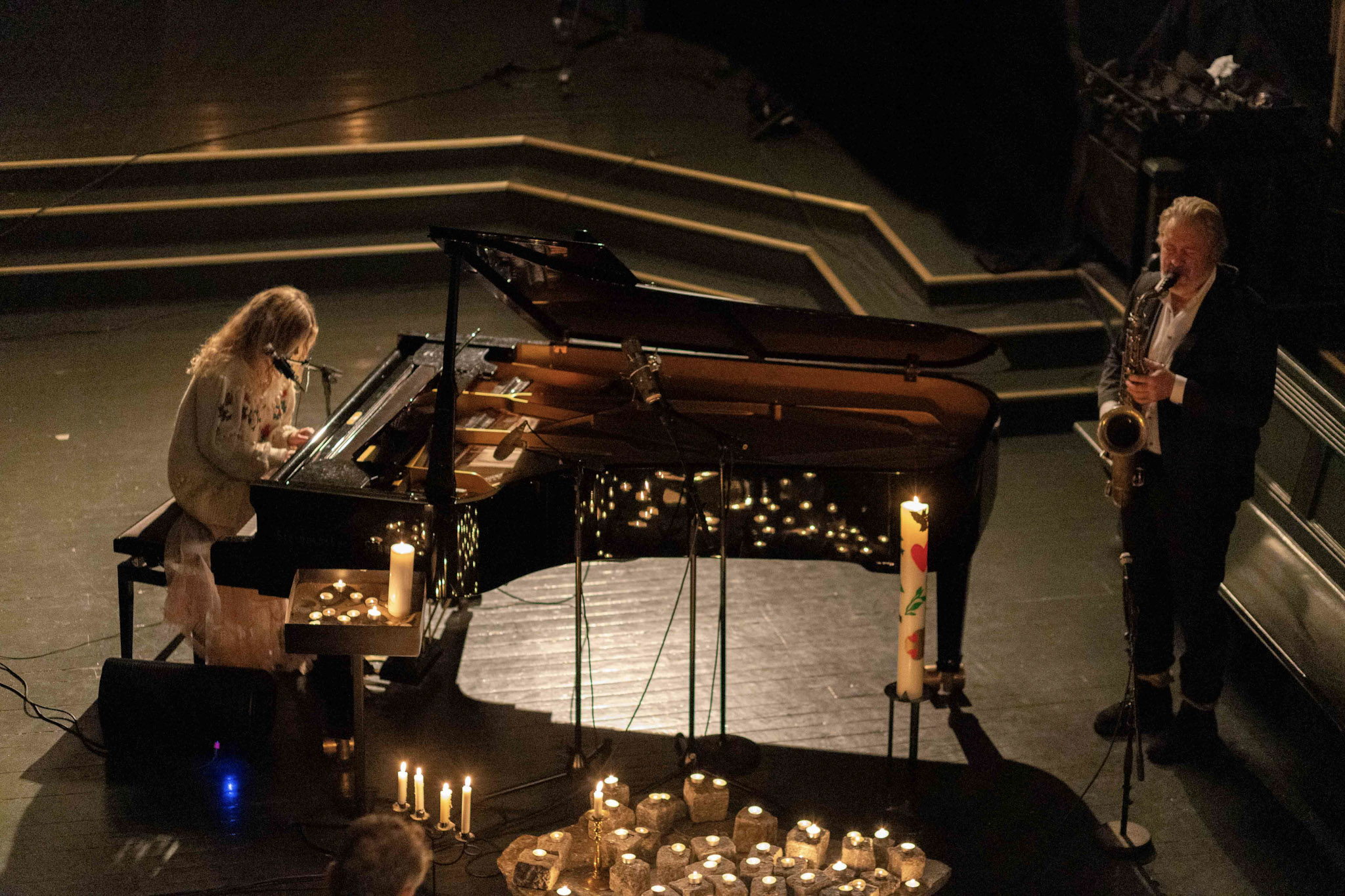 Marie og saksofonist Trygve Seim (54) fremfører «Hundretusen hjerteslag» fra albumet «Alle mine svar blei om til såpebobleregn».