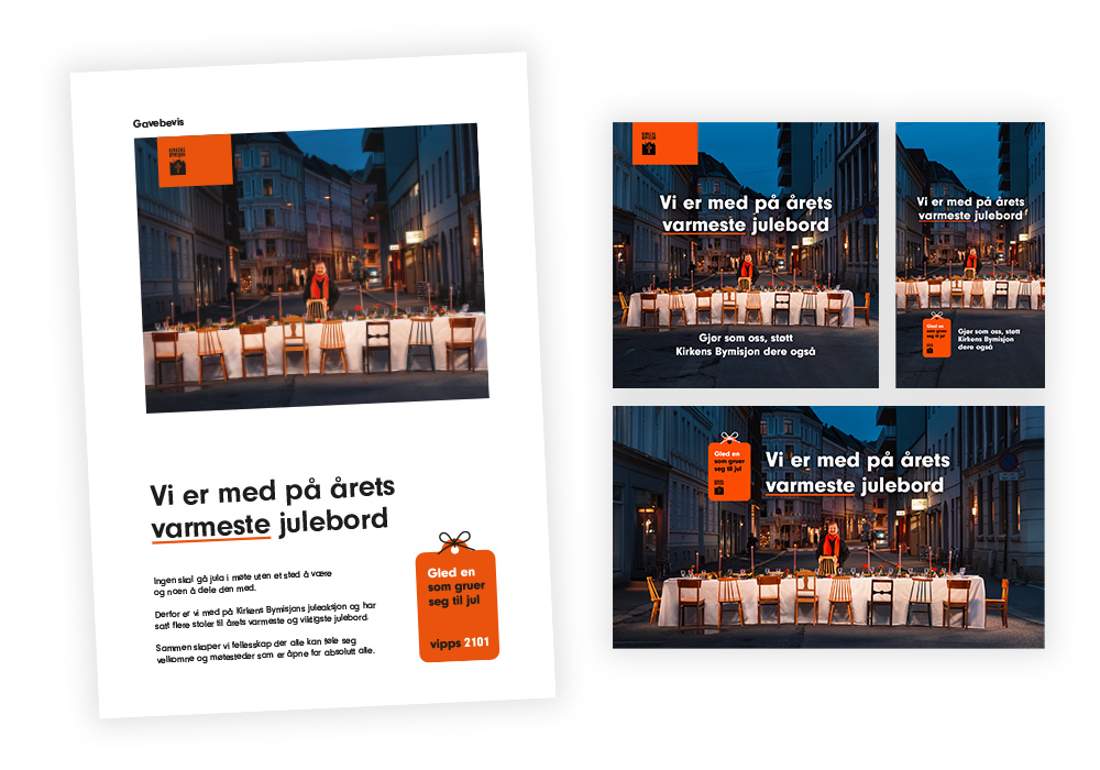 Last ned gavebevis og markedsmateriell som viser at dere har vært med på å sette stoler til Norges varmeste julebord. Innholdet kan deles både internt og eksternt