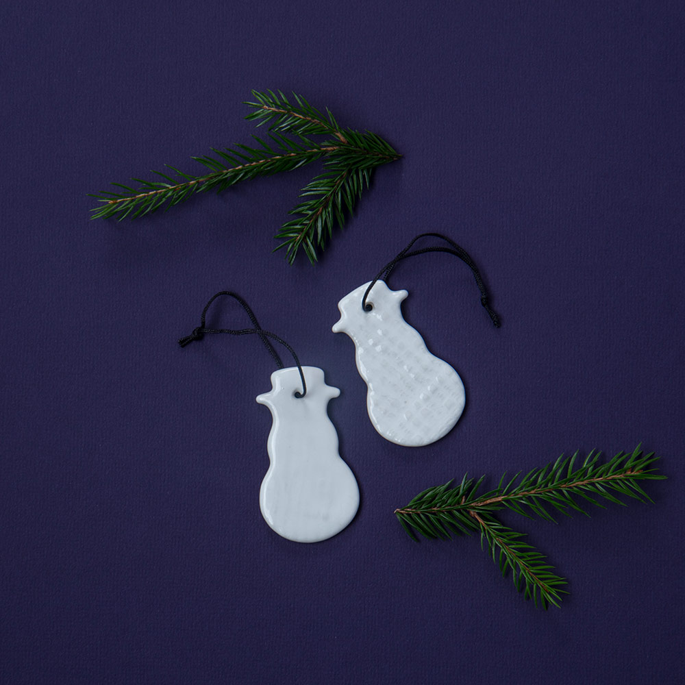 Håndlaget dekorasjon i glass. 3 cm høy, leveres med satengbånd i en gaveeske. Pris pr stk.