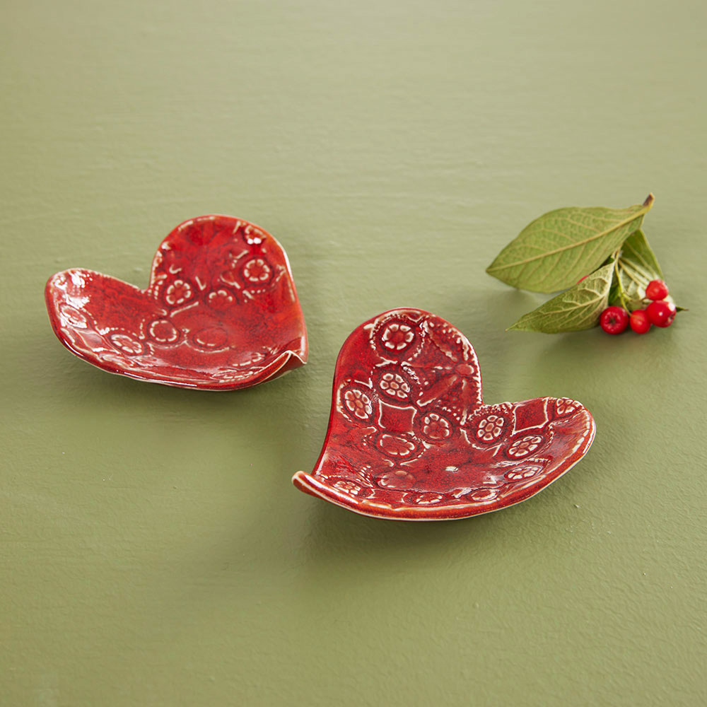 Håndlaget dekorativ hjerteformet skål laget i keramikk. Fåes i flere farger. Pris pr stk.