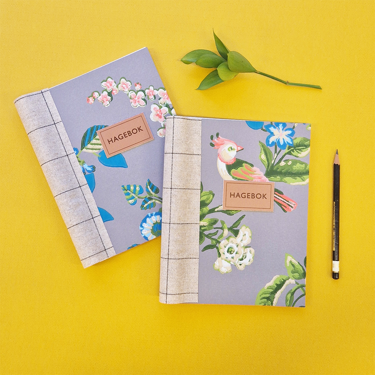 A5 spiralbok med rygg i vokset tekstil og cover i resirkulert tapet. Her er det god plass til ideer og erfaringer, frø- og plantelister, tegninger av bed og blomster. Det er bare å slippe kreativiteten løs. En flott gave til deg selv eller en hageentusiast du er glad i.