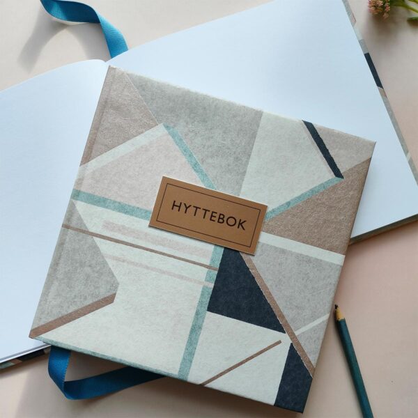 En hyttebok er en kjær familiebok hvor du kan finne tilbake til gode ferieminner og hyggelige hilsener fra gjester. Kirkens Bymisjons hyttebok er håndlaget av resirkulerte materialer. Tapet er rester som ellers ville blitt kastet. De 30 papirarkene blir holdt sammen av en spiral. Her er det god plass til å skrive hyggelige historier og lime inn bilder. Ryggen er kledd med tekstil. Du kan velge mellom flere forskjellige varianter av farge og mønster.