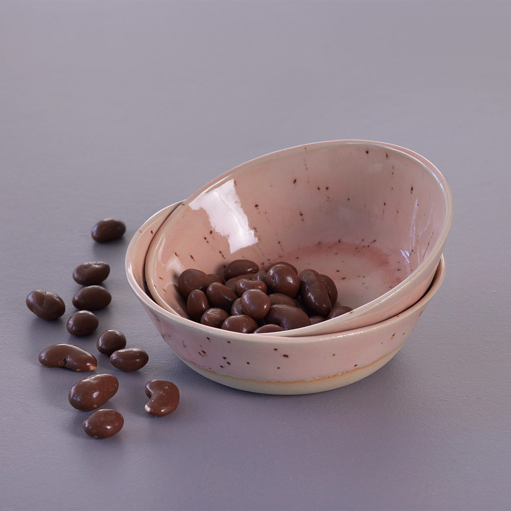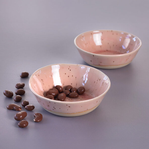 Skål i keramikk – rosa spettet