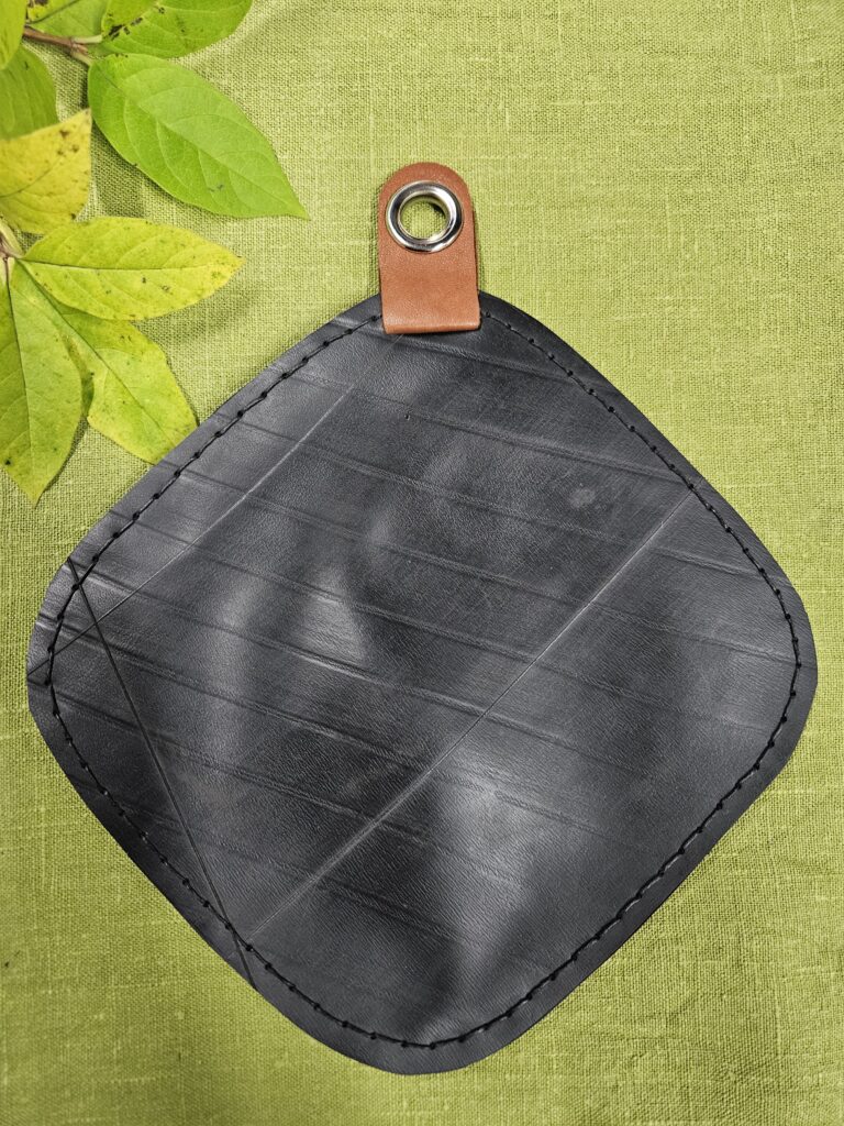 Røffe og slitesterke gryteunderlag som er redesign og gjenbruk av slanger av traktordekk. Hvert underlag er unikt, og håndsydd med vokset lintråd. Fungerer også som grytekluter.