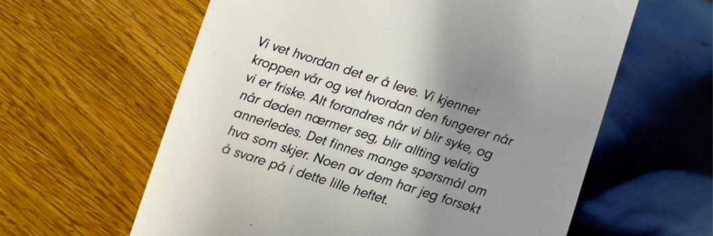 En liten bok om døden. Hvordan opplever barn å miste besteforeldre eller andre familiemedlemmer? Hva skjer underveis mot et dødsfall, og etterpå?