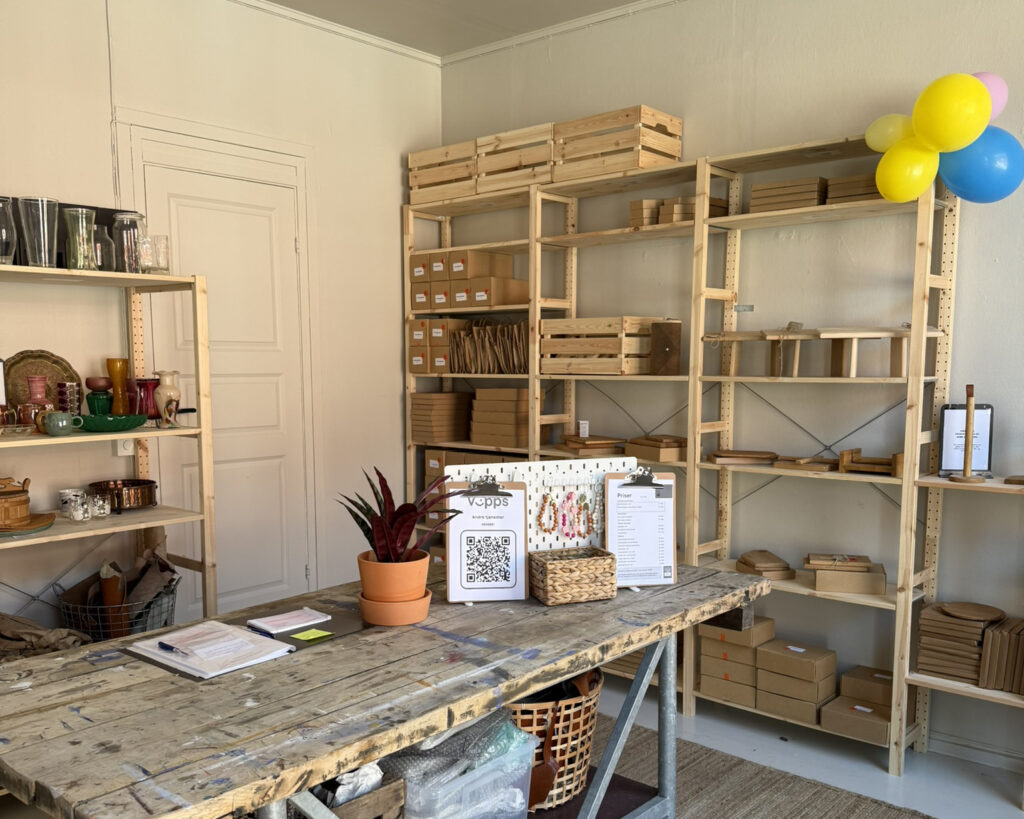 På produksjonsverkstedet får ungdom mulighet til å utvikle ferdigheter gjennom praktisk arbeid, og produktene de lager selges i vår fysiske butikk – et hyggelig sted du kan besøke for å handle unike, håndlagde varer laget lokalt. Det åpne bydelsverkstedet er tilgjengelig for alle som bor i nabolaget som ønsker å være kreative, lære nye ting eller ha et sosialt møtested. Her kan du delta på ulike gratis aktiviteter og tilbud for barn og unge, eller låne lokalene til eget bruk.
